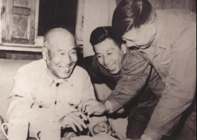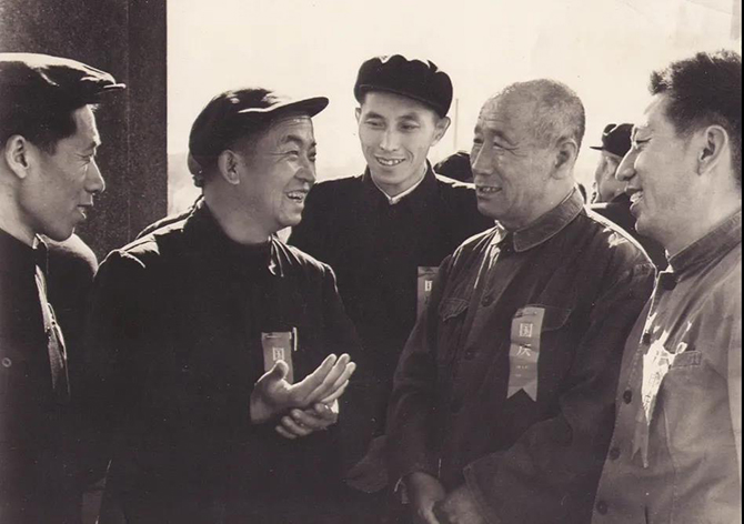 孟泰(右二)和大庆铁人王进喜(左二)在鞍山相见。