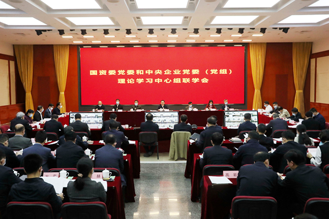 3月29日,国资委党委和中央企业党委(党组)以视频会议形式举行理论学习中心组联学会。国资委党委书记、主任郝鹏主持联学会并讲话强调,要深入学习贯彻习近平总书记在省部级主要领导干部学习贯彻党的十九届五中全会精神专题研讨班开班式上的重要讲话精神,坚持以人民为中心的根本立场,把握新发展阶段、贯彻新发展理念、构建新发展格局,推动中央企业加快打造原创技术策源地和现代产业链链长,着力打造国家战略科技力量,增强产业链稳定性和竞争力,促进实现高水平的自立自强,为党和国家事业发展作出更大贡献。国资委党委委员、副主任任洪斌介绍了有关工作情况。国资委党委委员、副部长级干部参加了联学会。
