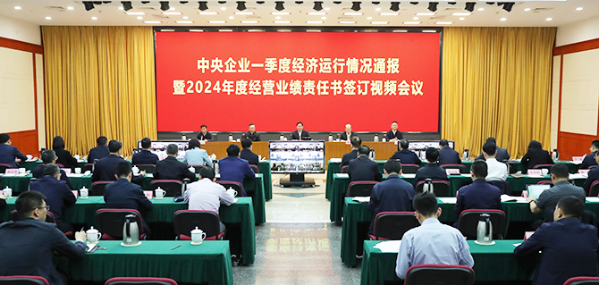 4月28日,国务院国资委召开视频会议,深入学习贯彻习近平总书记近期系列重要指示批示精神,贯彻落实党中央、国务院重大决策部署,通报一季度中央企业经济运行情况,研究部署下一阶段工作。国务院国资委党委书记、主任张玉卓代表国务院国资委与中央企业负责人签订2024年度经营业绩责任书并讲话。国务院国资委党委委员、副主任谭作钧主持会议,党委委员、副主任袁野通报有关工作情况及2024年度中央企业负责人经营业绩考核目标情况。国务院国资委党委委员、副主任苟坪出席会议。